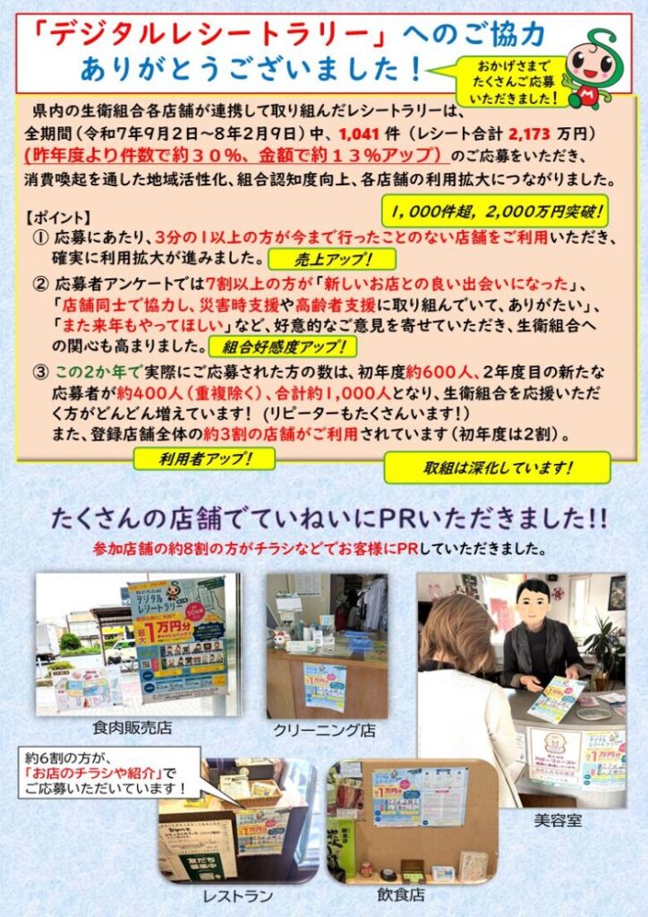 【参加店舗の皆様へ】デジタルレシートラリーへのご協力ありがとうございました。